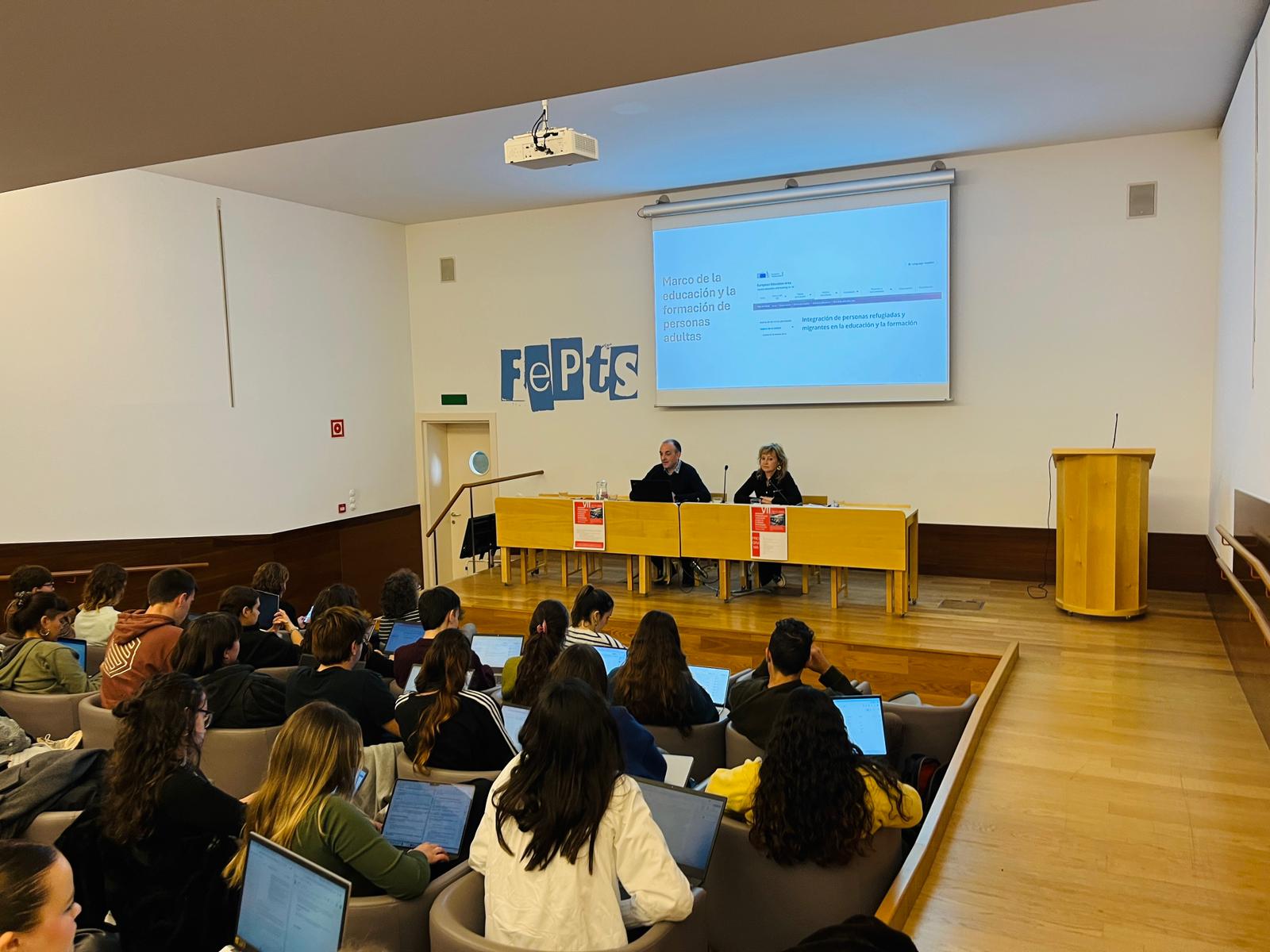 Descarregar PdfEl 12 de novembre de 2025, la FEPTS va acollir unes 100 persones al seminari anual, organitzat pel professorat a temps complet de l’Àrea de Teoria i Història de l’Educació, i coordinat des del grup GR-ASE Anàlisi Social i Educativa (Núria Llevot, Olga Bernad, MaPaz López i Àngels Torrelles), en col·laboració amb el Programa Aules contra la Pobresa de la UdL. La jornada va incloure una conferència i una taula rodona en què professionals, investigadors/es i participants van compartir bones pràctiques, estratègies de mediació intercultural i projectes innovadors.