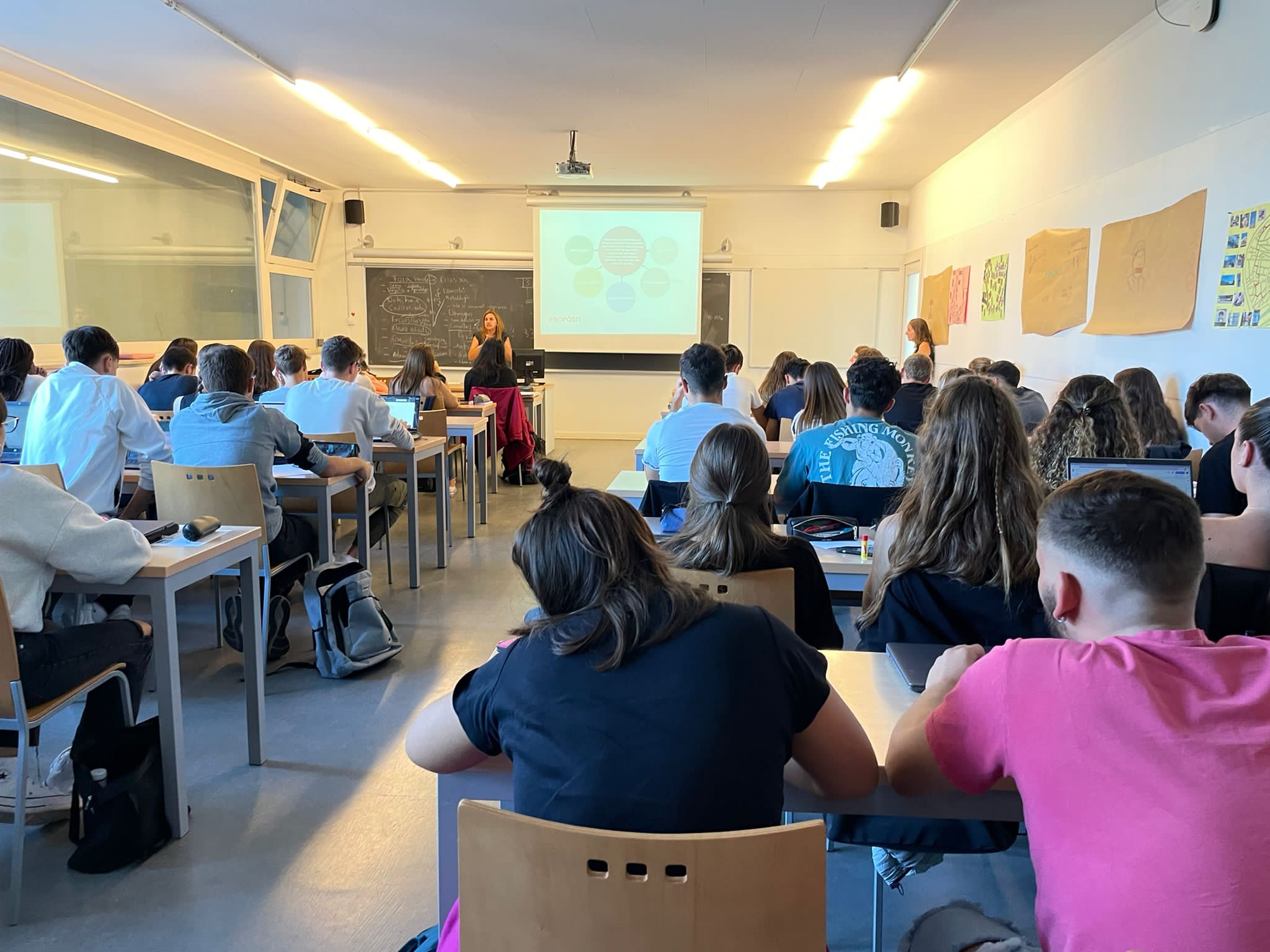L’acció ha consistit en dues xerrades-taller adreçades a l’alumnat de primer curs del grau d’Educació Primària, modalitat dual matí i tarda, en l’assignatura d’integració, conduïda pels professors Olga Bernad i Agustín González, del Departament de Pedagogia i membres del grup de recerca GR.ASE, i Àngels Torrelles, coordinadora de la Xarxa 360 i col·laboradora de GR.ASE.